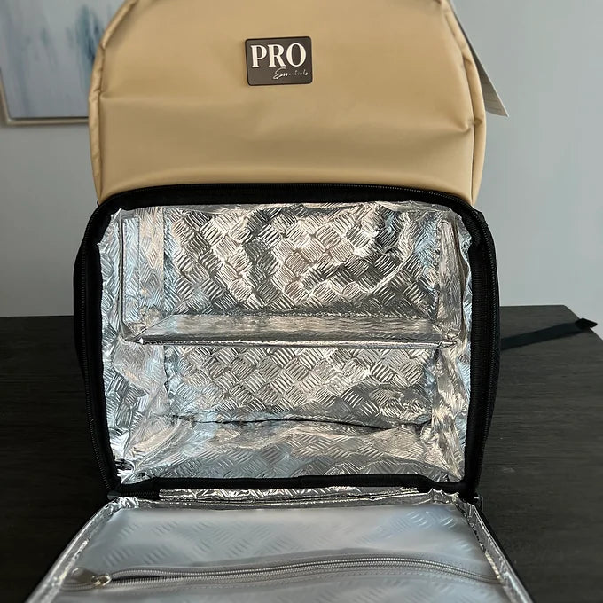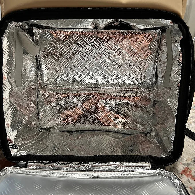 The main insulated compartment offers a 5" foldable shelf and zippered sleeve inside. The back features a separate computer compartment for added convenience (compatible with 17" laptop). Additionally you can travel comfortably with padded, adjustable straps, protective bottom fabric, and a trolley sleeve.